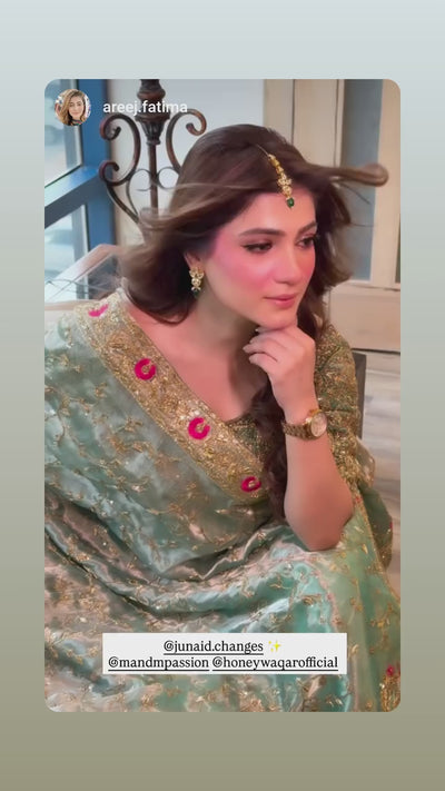 This 3-layer Indian Kundan necklace set features vibrant emerald stones and a matching tikkah. Handcrafted with intricate detailing, it adds elegance and traditional charm to any special occasion.